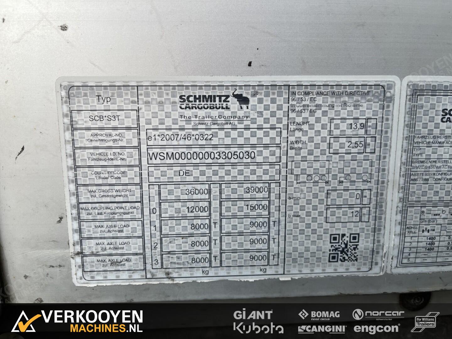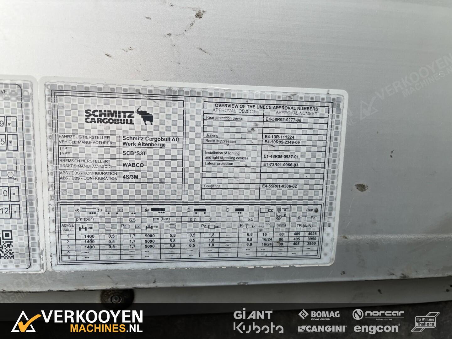 Schmitz Cargobull 3CB 3ST Schuifzeil Oplegger - Liftas - Laadklep - Schuifdak - Alcoa Anhänger Spezifikationen