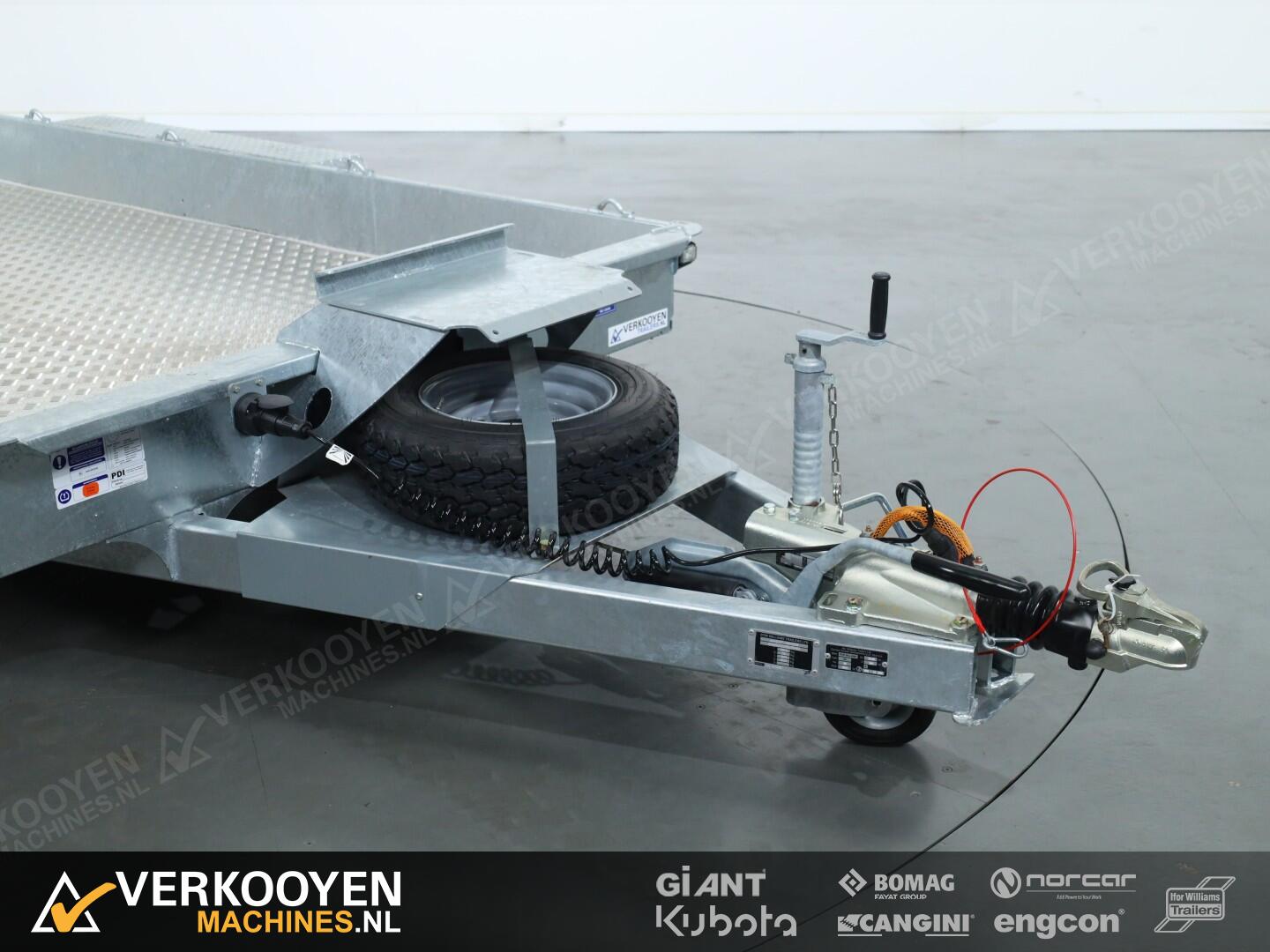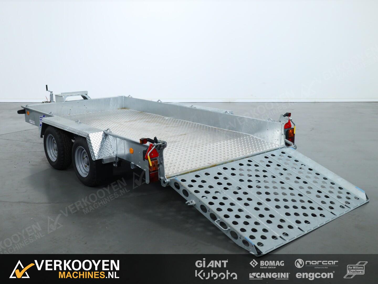 Schitterende machinetransporter van Ifor Williams, uit de GH-serie. Deze wagens kenmerken zich door een zeer sterke stalen opbouw. Deze wagens hebben een afgeschuinde achterkant, en i.c.m. de oprijklep, en de lage laadvloer, krijg je een zeer gunstige oprijhoek. De wagens zijn bladgeveerd. Dit is zeer geschikt voor het veilig/- en comfortabel vervoeren van machine's. Er zijn vele vastzetpunten aanwezig om uw machine goed en veilig vast te zetten. De spatborden zijn van dik staal, met antislip. Voor het spatbord zit een op/- afstap geintegreerd. U kunt de wagen verder aanvullen met diverse optie's zoals een reservewiel, antidiefstalslot of een aluminium vloer.