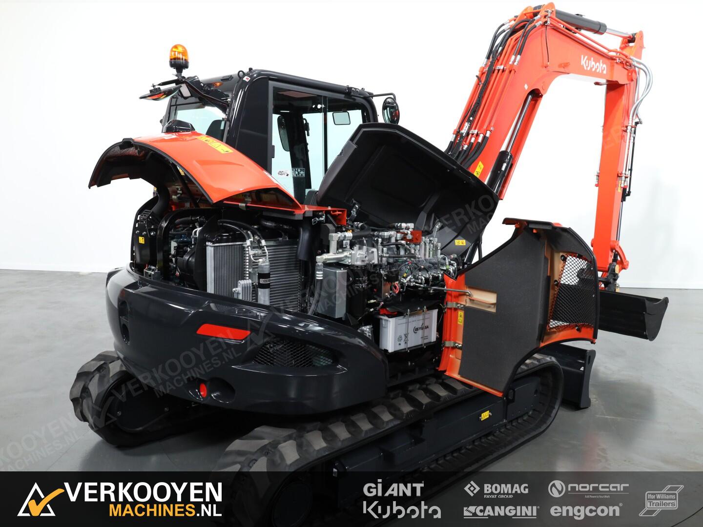 Het topmodel van de Kubota range heeft een verbeterd hydraulisch systeem en voldoet aan EU stage V door toepassing van een geavanceerd roetfilter.